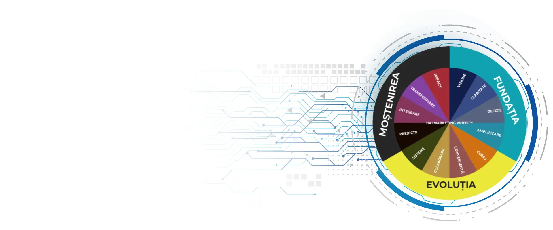 HAI™ este framework-ul pe care l-am dezvoltat după 15+ ani de lucru cu companii de toate dimensiunile. Pornește de la o premisă simplă: marketingul tău este un ecosistem, nu o colecție de tactici.